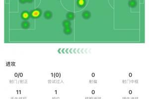 约克雷斯英超首秀60分钟被换下:0射门 11丢失球权 传球成功率44%